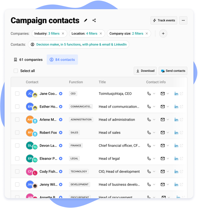 - Discover the right contacts with our new contact data feature, boasting over 7 million contacts throughout the Nordics.