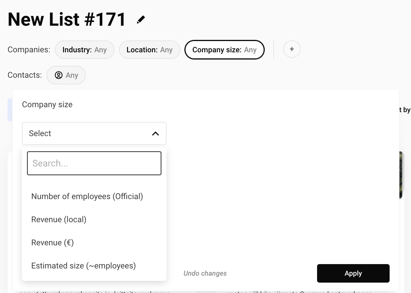 - Specifically, the Company size filter has been expanded into a group of filters. Now, this default group includes these filters: