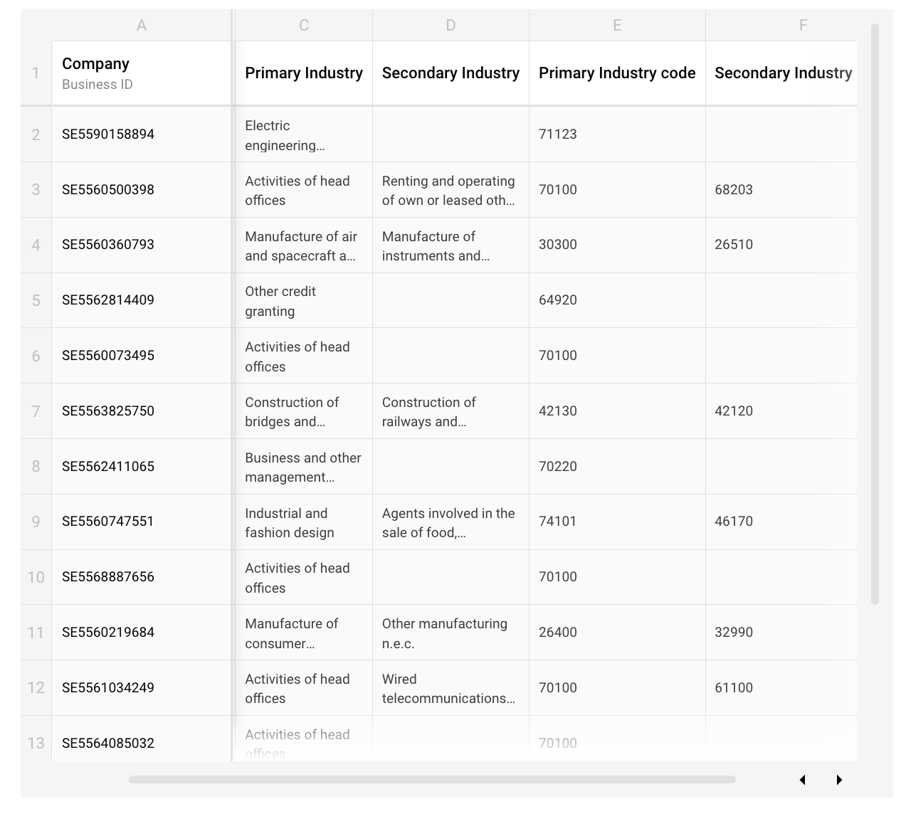 Additionally, CSV now includes primary and secondary industry descriptions and codes. This is available in SE/DK/NO where we get multiple industry codes from the official registry.