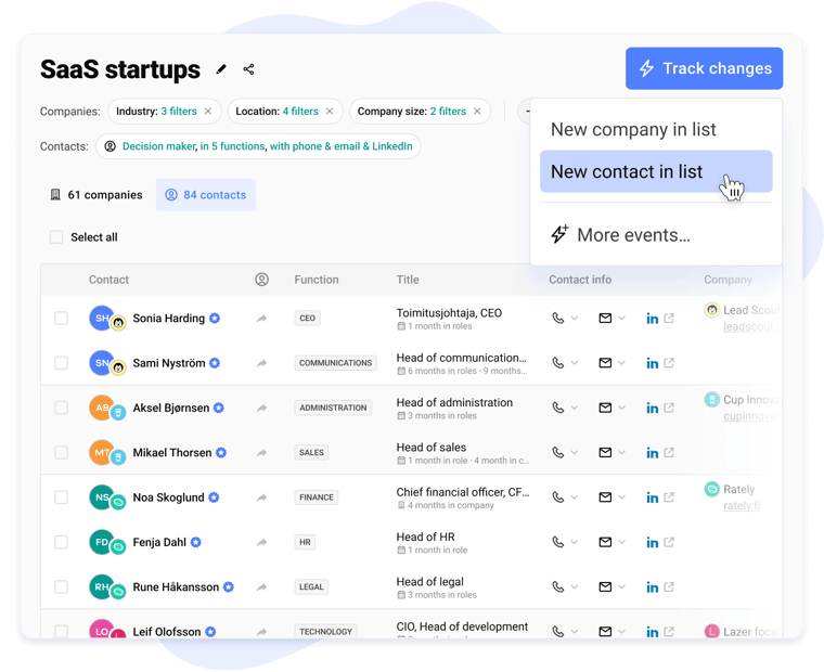- And voila! You’ll receive a notification when we detect a new decision-maker in that list.