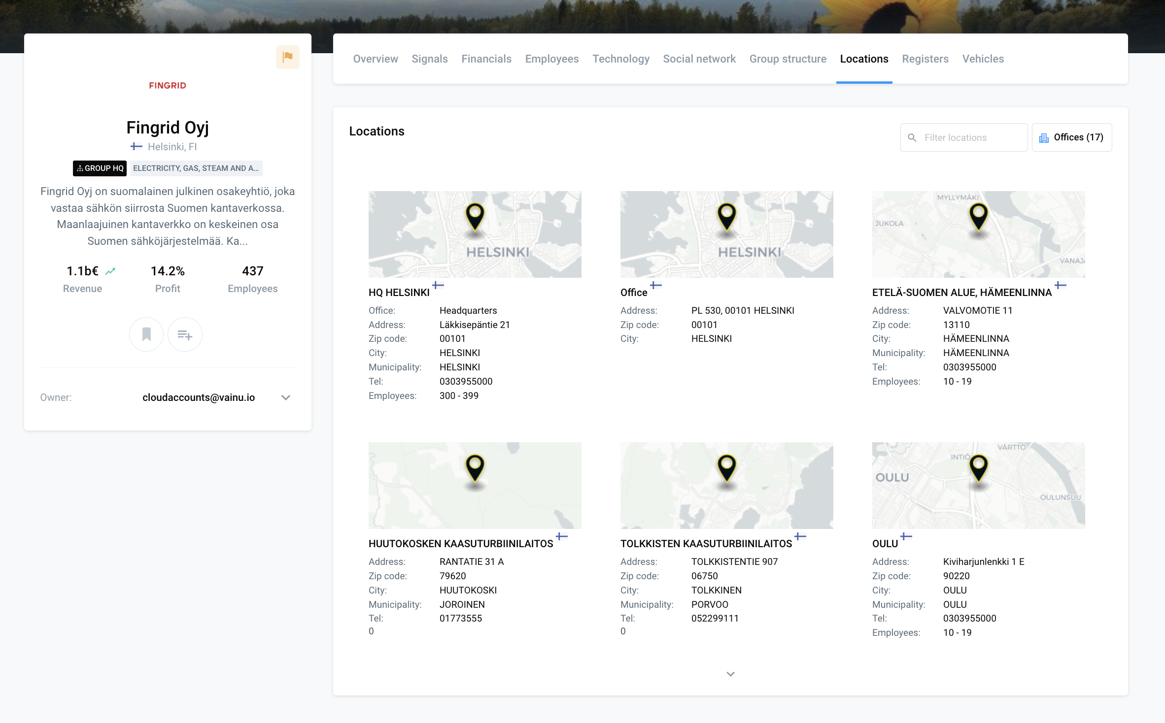 Vainu’s Business Unit Address data in Finland has gotten a huge upgrade: We've added a new data source to our offering on company establishments, which means that around 7500 Finnish companies now have new address data under their locations. The establishments can be: