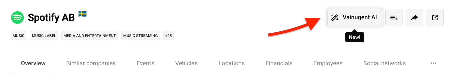 Right now, Vainugent is only available within individual company profiles. However, we are working on list-based prompting, allowing you to: