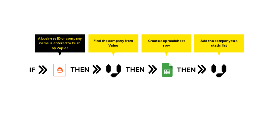 Integrating Vainu with Zapier enables you to build processes that fit your way of doing things— not the other way around. You can focus on your most important work by automating manual tasks without writing a single line of code. Zapier allows you to connect Vainu with 2000+ apps to automate the processes and tasks you do daily and increase your productivity.