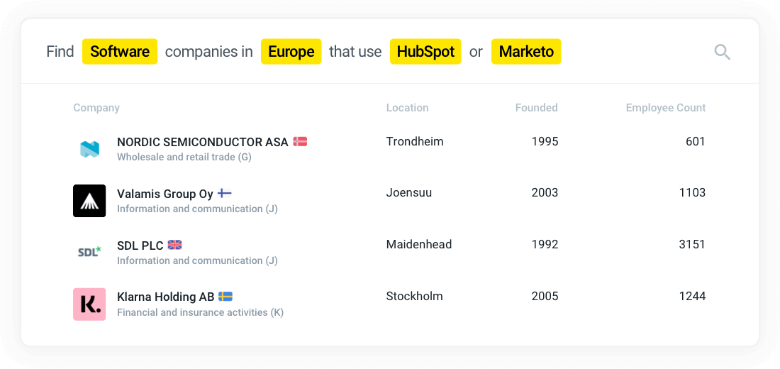 A properly clean CRM and solid internal processes will make prospecting much easier. Feeding fresh and reliable company data into your CRM (a data enrichment process) will reveal critical data points that will reduce prospecting to checking boxes for preferred company characteristics in a dynamic company database. Additionally, a sales intelligence tool can help you filter out prospects matching your ideal customer profile from a larger pool of leads.