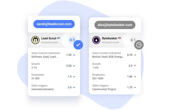 With Vainu's large variety of company attributes at your disposal, you can build detailed lead scoring models, so that you can identify and focus your efforts on the leads with the most potential.
