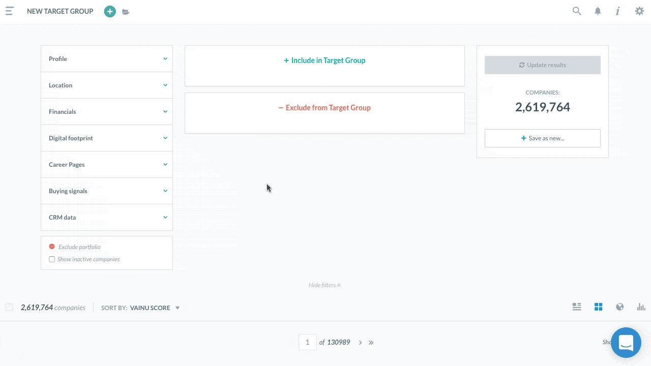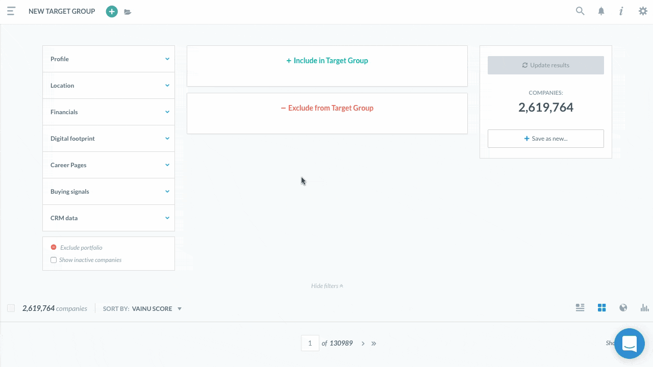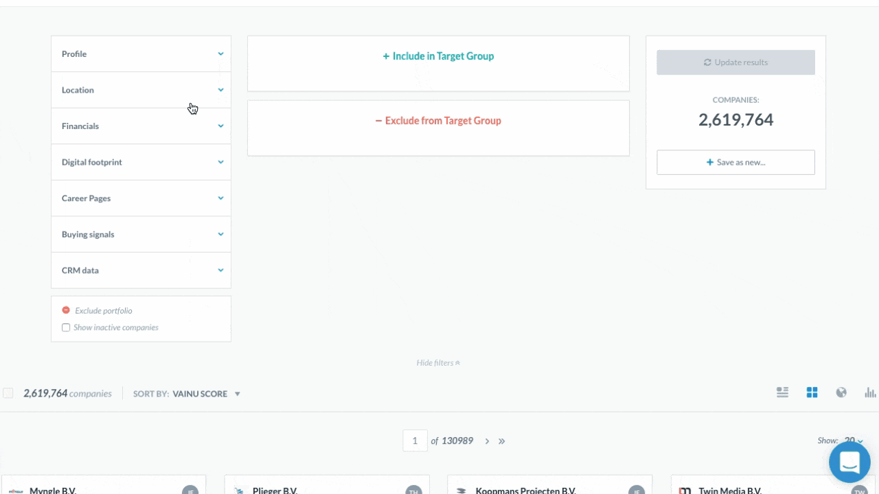 Gebaseerd op alle signalen die Vainu van een bedrijf oppikt in combinatie met predictive analytics, kan je bedrijven identificeren die in de nabije toekomst een bepaalde behoefte zullen vertonen. Bijvoorbeeld bedrijven met een hoge kans dat ze binnenkort internationaal gaan, investeringen gaan doen in IT of enorm snel zullen groeien.