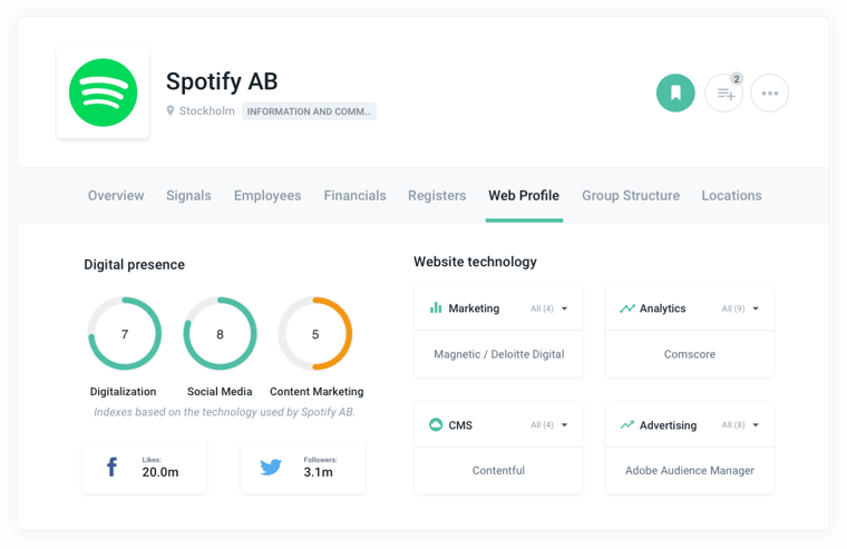 Technologieën laten sporen na die andere technologieën weer kunnen volgen. Zo kunnen deze sporen je veel vertellen over de huidige behoeften van een bedrijf én of het voldoet aan je ideale klantprofiel. Ook helpen de sporen je te bepalen of het benaderen van een lead je tijd en moeite waard is.