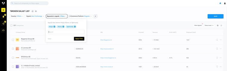 Bij Vainu hebben we onlangs onze nieuwe CRM-integratie met Pipedrive CRM en Salesforce Sales Cloud gelanceerd. Daarom zijn bedrijven die een van deze CRM-platforms gebruiken, voor ons de beste prospects. Ons B2B sales team gebruikt Vainu om bedrijven te vinden die voldoen aan ons vooraf gedefinieerde ideale klantprofiel en die een van deze CRM-platforms gebruiken.