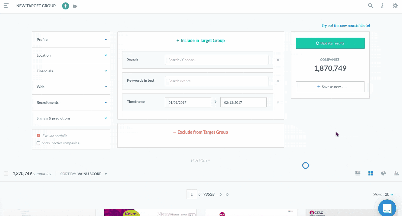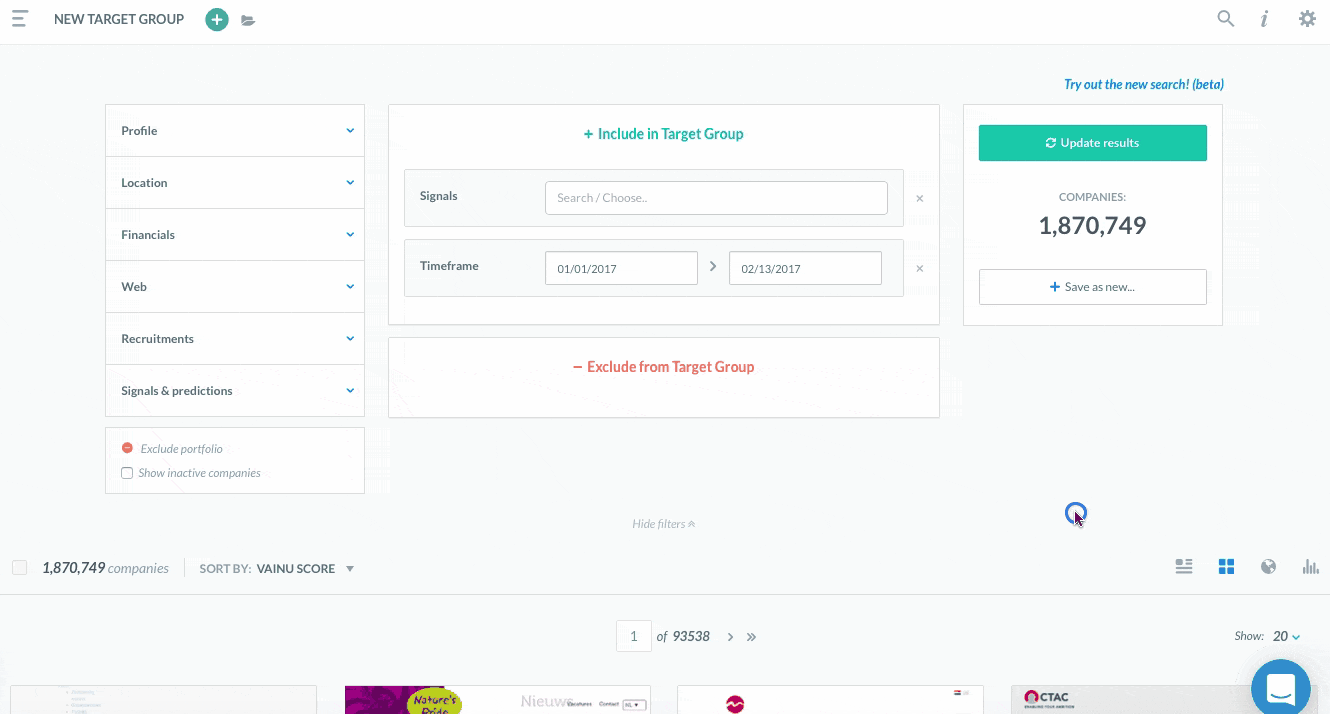 Je kunt al deze gebeurtenissen en bedrijven die passen bij je Ideale Klantprofiel (IKP) vinden in Vainu. Ook kun je notificaties ontvangen wanneer er iets gebeurt bij een van je prospects - en er voor jou een ‘window of opportunity’ ontstaat!